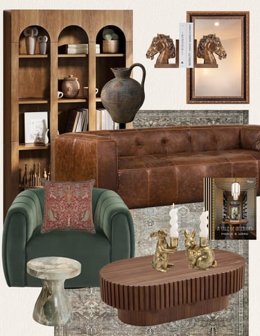 An eclectic home has a mix of styles and depths: modern furnishings with vintage embellishments, rich colors and interesting prints, natural woods and earthy tones. This moody inspo combines unexpected elements to create a moody yet welcoming space.