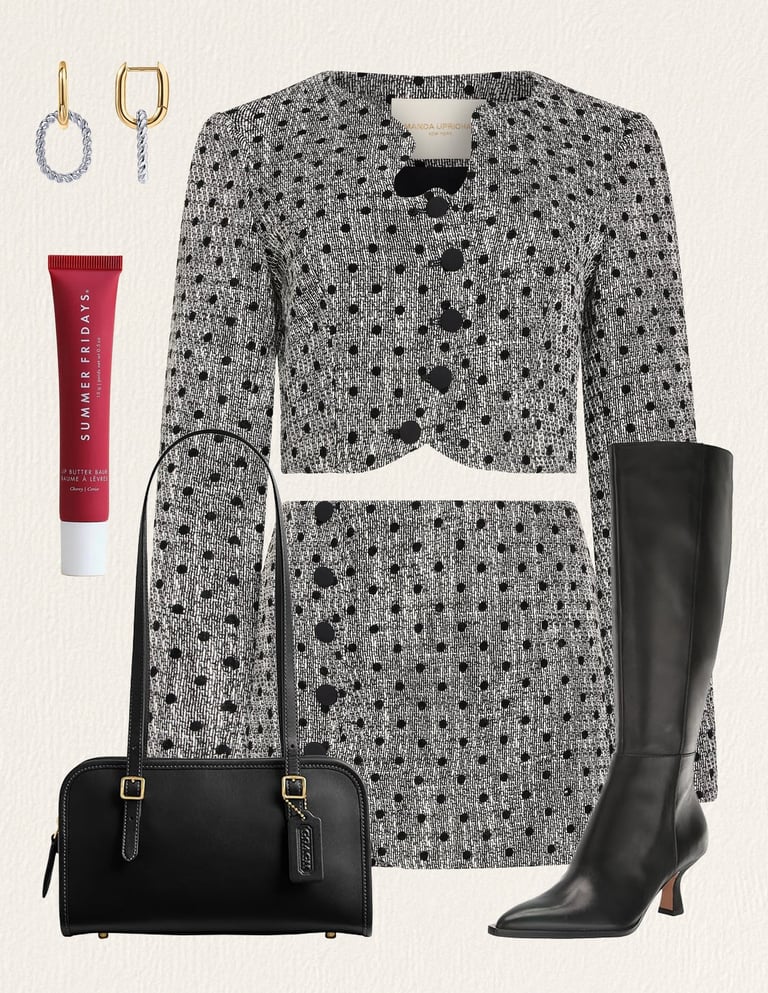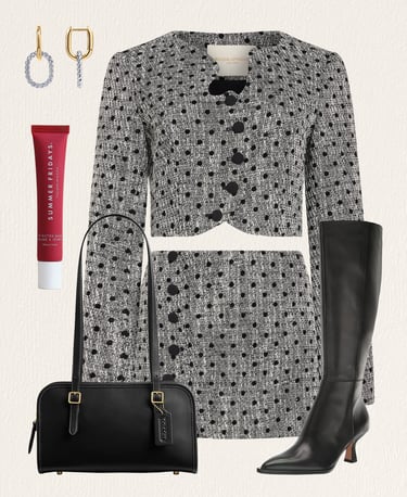 Transition your matching sets from summer to fall with this fun Amanda Uprichard set. The Dolce Vita Auggie boots are comfortable and wide-calf friendly. The Pavoi Chainlink earrings can be worn two ways and are a great transitional item to add to your collection.