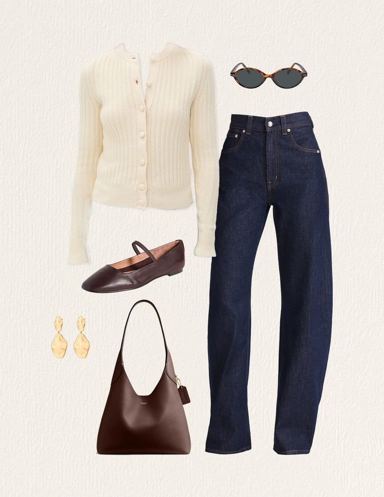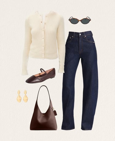 Polished and put-together — jeans or tailored pants, a nice sweater, delicate jewelry, and cute flats.